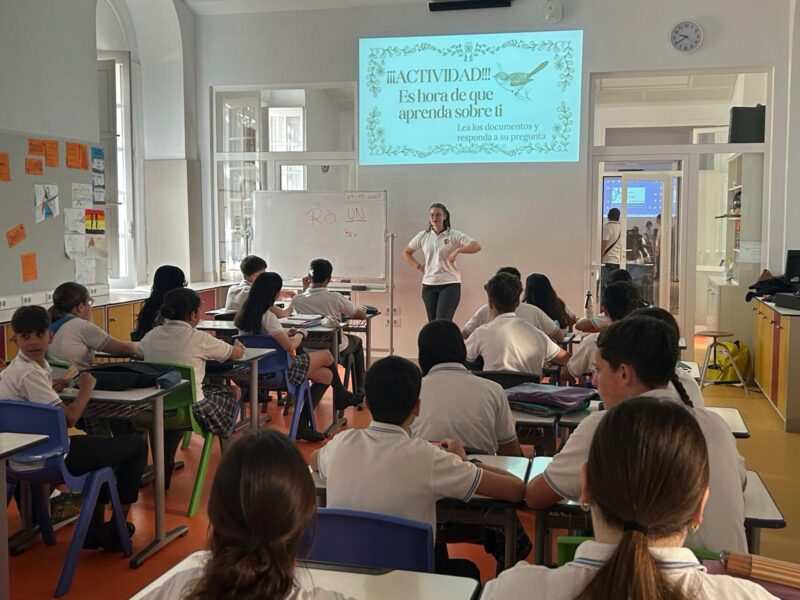 Durante el curso tenemos la oportunidad de disfrutar de numeroso alumnado de otros países que comparten no solo su tiempo entre nosotros. En algunos casos, su implicación en el día a día del centro les lleva a plantear proyectos como el Taller sobre Sostenibilidad promovido por la que fue nuestra alumna irlandesa de 4º ESO, Rosie May Penn Chester, en las clases de Educación en Valores de 2º de ESO.